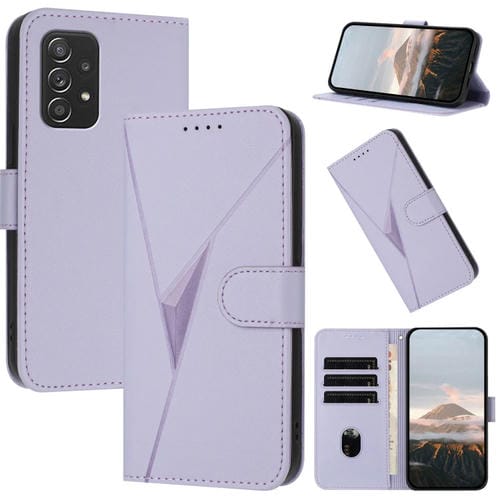 Funda de Cuero Samsung Galaxy A52 4G/5G Cierre Hebilla Diseño Triangular (Morado Claro)