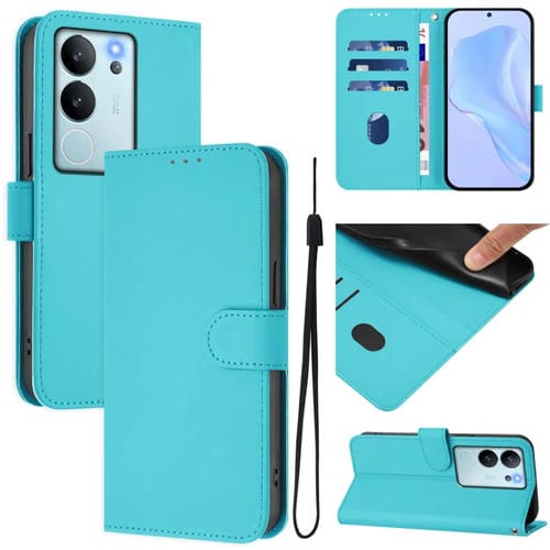 Funda de Cuero con Cordón para Teléfono con Sensación de Piel Global para Vivo V30 Lite 5G (Azul Lago)