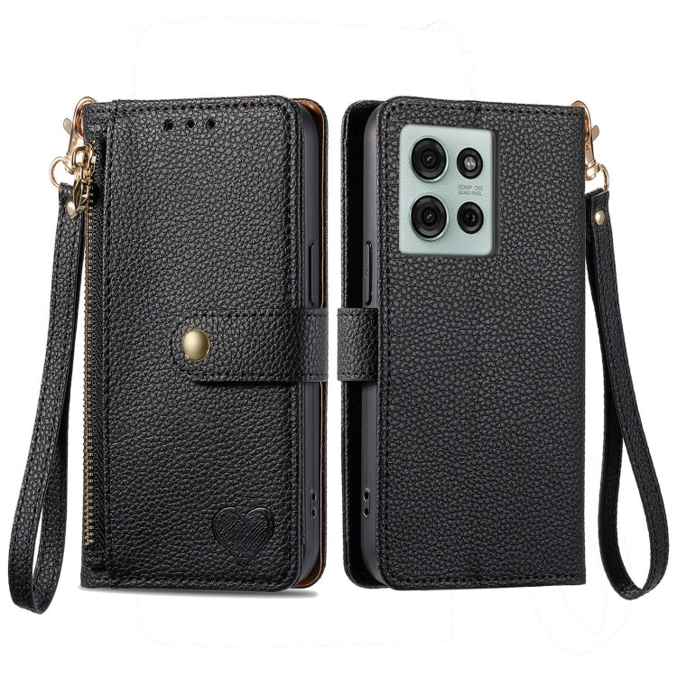 Funda de Cuero con Cordón y Cremallera Love para Motorola Moto G75 5G (Negra)