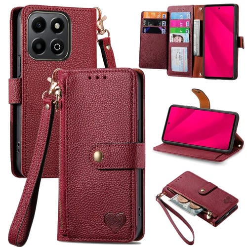 Funda de Cuero Smart Love con Cordón y Cremallera para Honor 200 (Rojo)