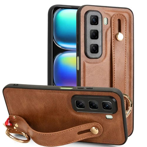Funda de Cuero con Correa para El Brazo para Infinix Hot 50 5G (Marrón)