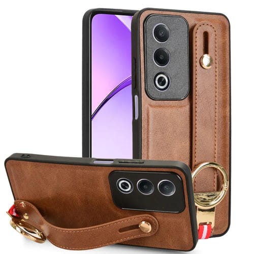 Funda de Cuero con Correa para la Muñeca para Oppo A3 Pro India (Marrón)