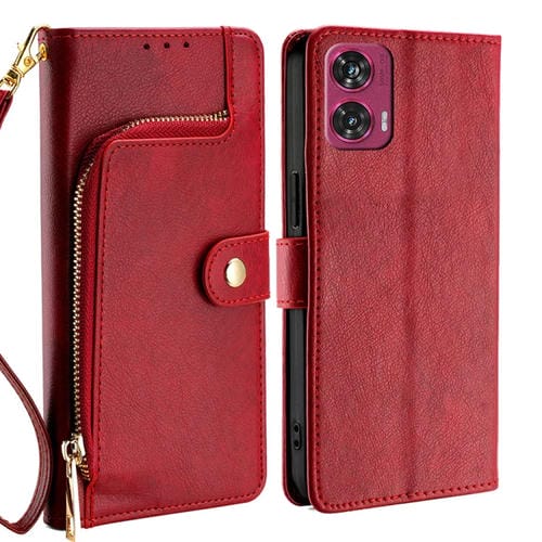 Funda de Cuero con Cremallera para Motorola Edge 50 Fusion 5G (Rojo)