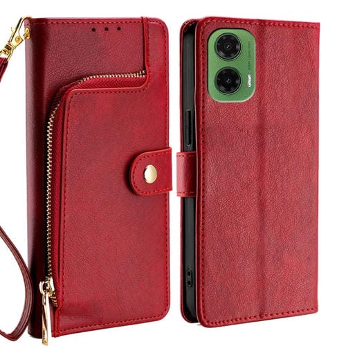 Funda de Cuero con Cremallera para Motorola Moto G35 5G (Rojo)