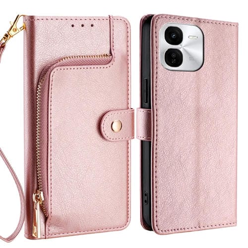 Funda de Cuero con Cremallera para Teléfono Vivo Iqoo Z9X 5G (Oro Rosa)