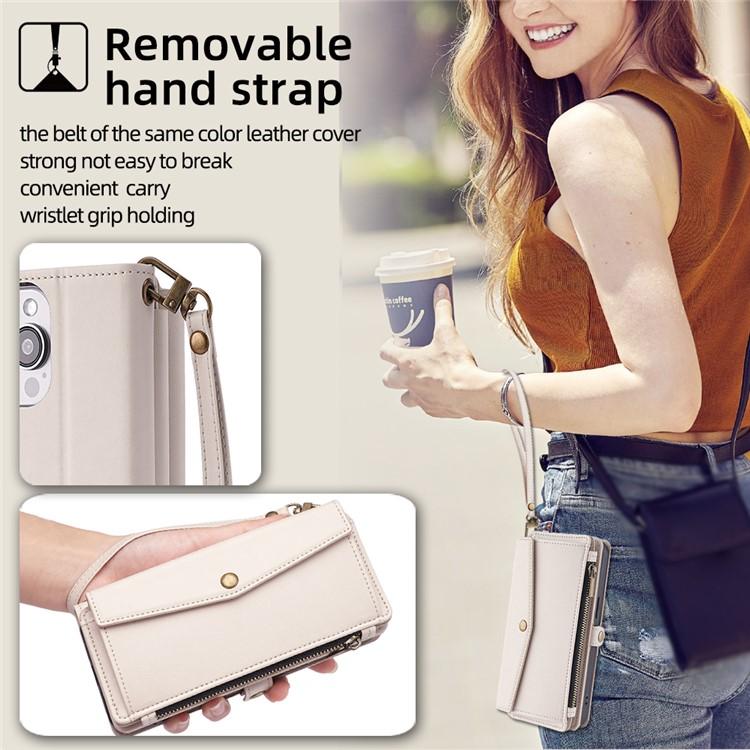 Funda de cuero con cremallera y hebilla lateral para iPhone 17 (blanco)