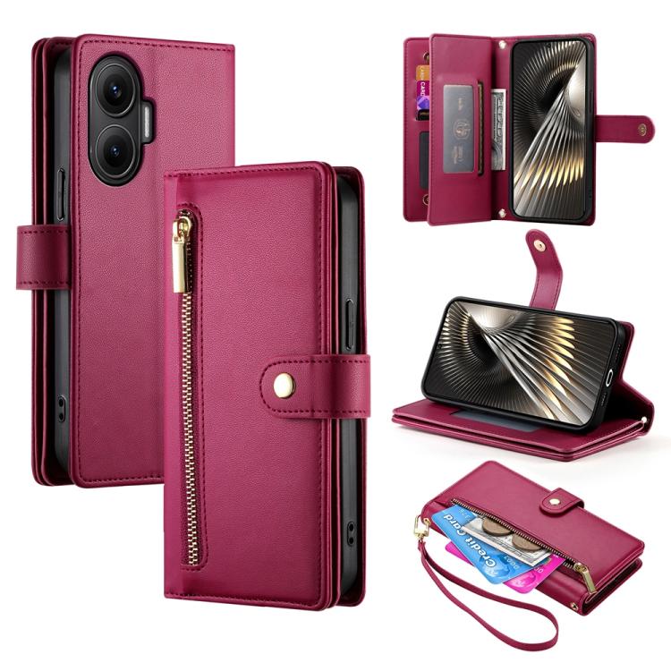 Funda de cuero con cremallera y ranura para tarjetas para Redmi Turbo 4 Pro y Xiaomi Poco F7 (rojo)