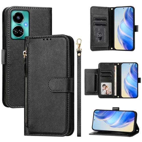 Funda de Cuero con Cremallera y Ranuras para Tarjetas para Tecno Camon 19 y Camon 19 Pro 5G (Negro)