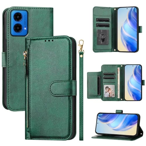 Funda de Cuero con Cremallera y Ranuras para Tarjetas para Motorola Moto G45 5G/G34 5G (Verde)
