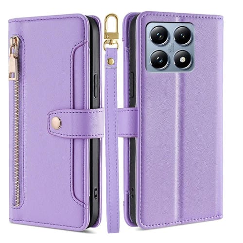 Funda de Cuero con Cremallera y Textura de Oveja para Xiaomi 14T Pro 5G (Morado)