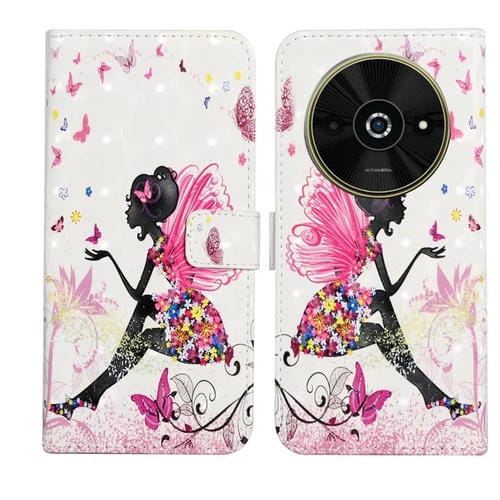 Funda de Cuero con Dibujo 3D En Relieve de Aceite para Xiaomi Poco C61 (Hada de Las Flores)