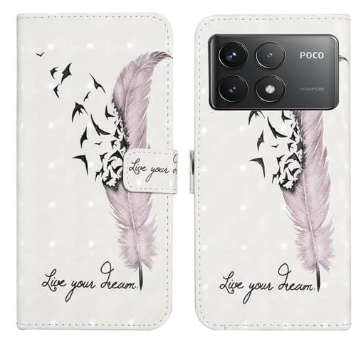 Funda de Cuero con Dibujo 3D En Relieve de Aceite para Xiaomi Poco F6 Pro (Pluma)