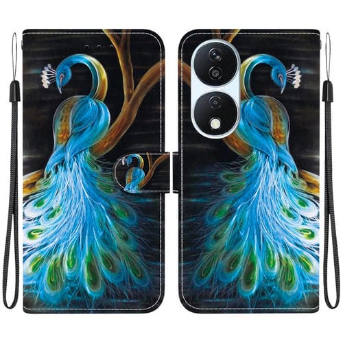 Funda de Cuero Honor X7B Play 50 Plus con Dibujo de Colores y Textura de Cristal (Pavo Real)