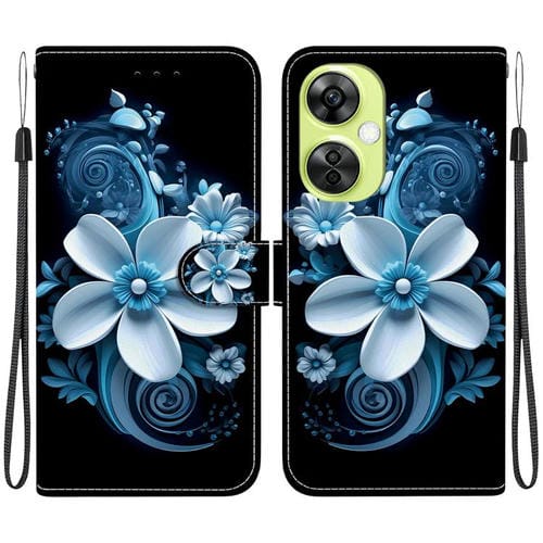 Funda de Cuero con Dibujo y Textura de Cristal para OnePlus Nord Ce 3 Lite/N30 (Orquídea Negra)