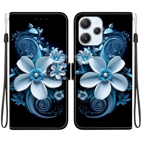 Funda de Cuero con Dibujo de Colores y Textura de Cristal para Redmi 12 4G/5G/Poco M6 Pro (Orquídea Negra)