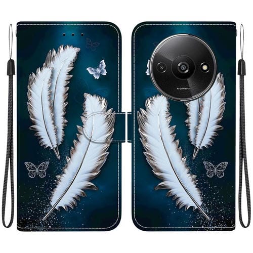 Funda de Cuero con Dibujo de Colores y Textura de Cristal para Redmi A3 (Plumas de Mariposa Blancas)