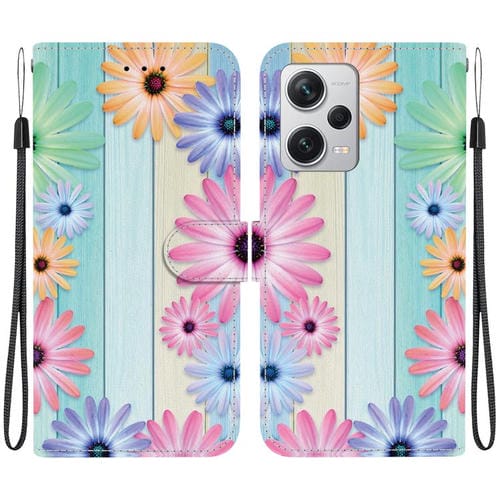 Funda de Cuero con Dibujo de Colores y Textura de Cristal para Redmi Note 12 Pro+ 5G (Girasoles)