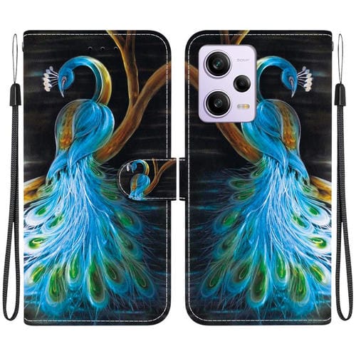 Funda de Cuero con Dibujo de Colores y Textura de Cristal para Redmi Note 12 Pro/Poco X5 Pro (Pavo Real)