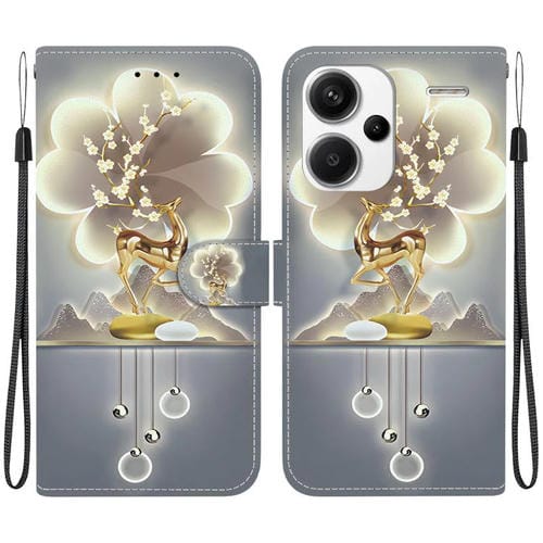 Funda de Cuero con Dibujo de Colores y Textura de Cristal para Redmi Note 13 Pro+ 5G (Ciervo Sika)