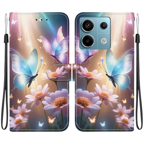 Funda de Cuero con Dibujo de Colores y Textura de Cristal para Redmi Note 13 Pro 5G (Mariposa, Amor y Flores)