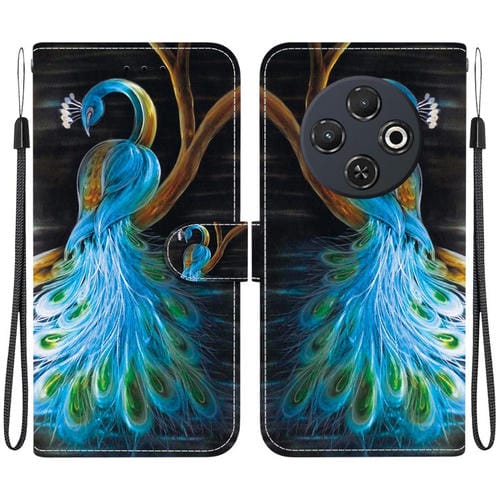 Funda de Cuero para Tecno Spark 30C con Dibujo de Colores y Textura de Cristal (Pavo Real)