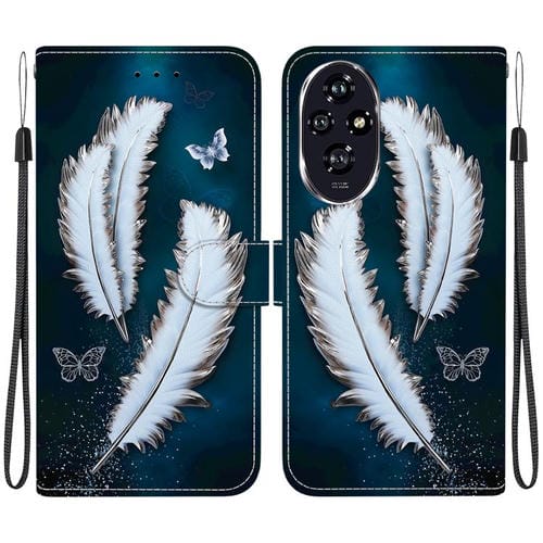 Funda de Cuero para Honor 200 5G con Dibujo de Colores y Textura de Cristal (Plumas de Mariposa Blancas)
