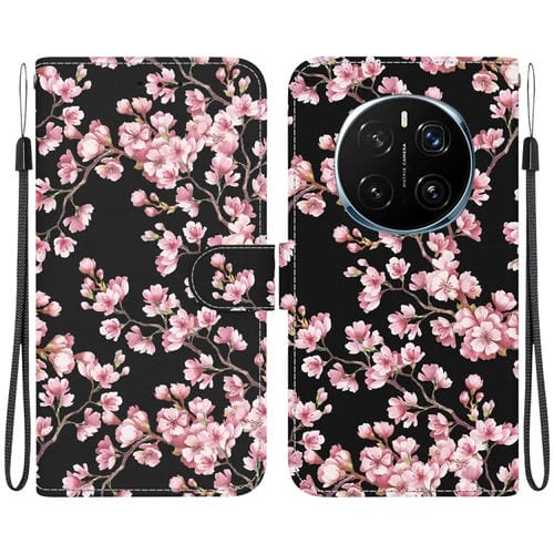 Funda de Cuero para Honor Magic 7 Pro con Dibujo de Colores y Textura de Cristal (Flor de Ciruelo)