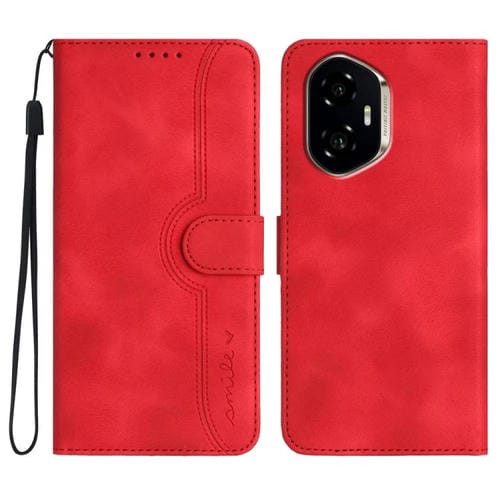 Funda de Cuero para Honor 300 con Diseño de Corazón (Rojo)