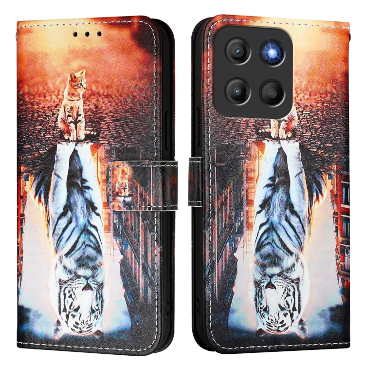 Funda de Cuero para Motorola Moto G15 con Diseño de Gatos y Tigres (Liso)