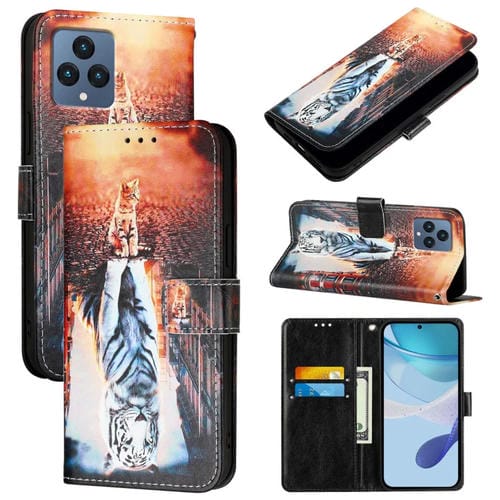 Funda de Cuero para Teléfono T-Mobile Revvl 6/6X 5G con Diseño Gatos y Tigres
