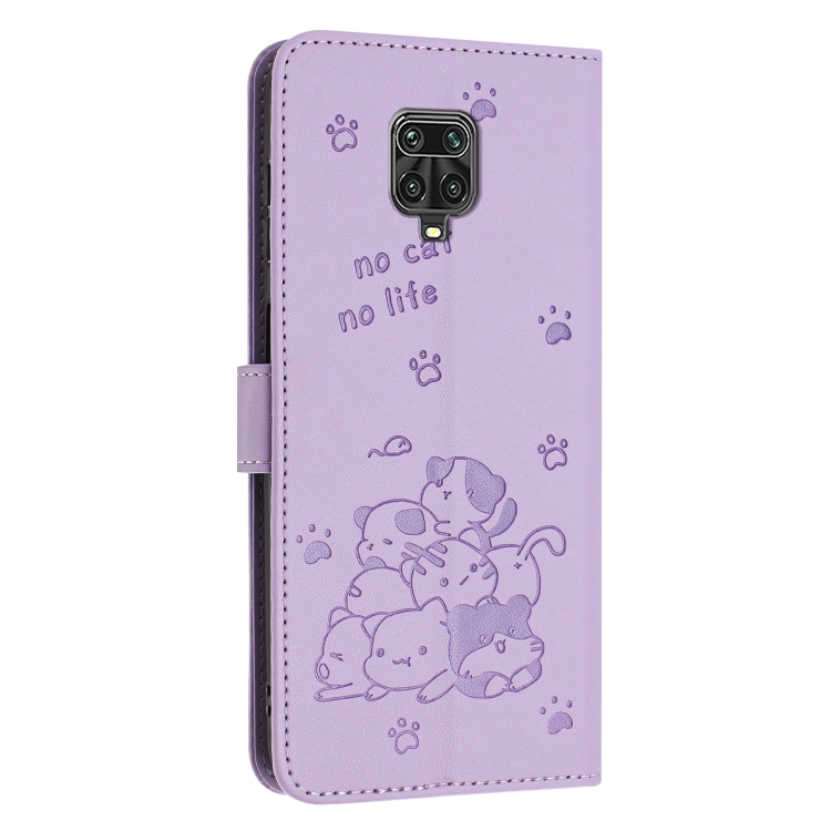 Funda de Piel con Diseño de Gatito En Relieve para Redmi Note 10 Lite con Cordón (Morado)