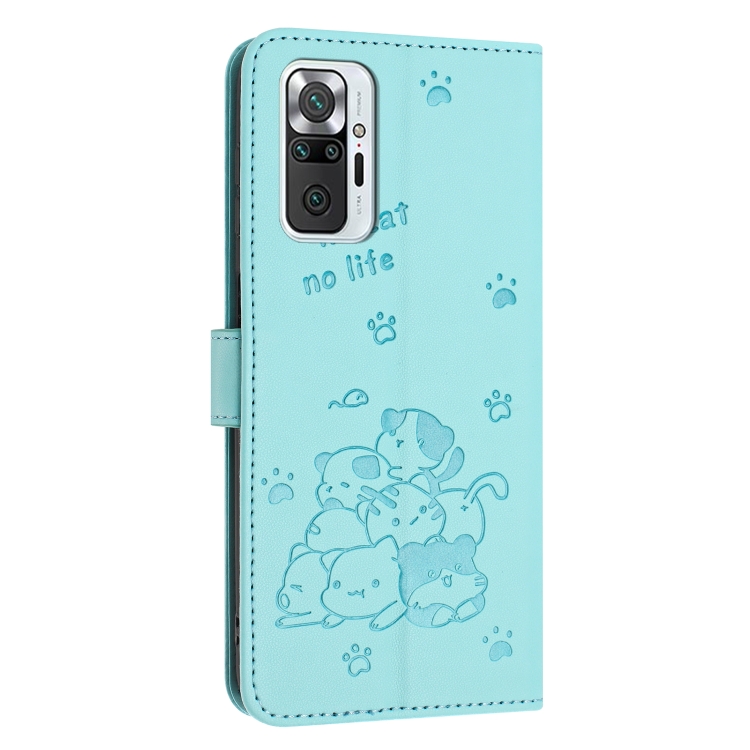 Funda de Piel con Diseño de Gatito En Relieve para Redmi Note 10 Pro con Cordón (Verde Menta)