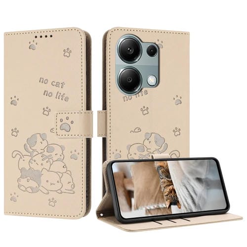 Funda de Cuero con Estampado de Gatito y Cordón para Redmi Note 13 Pro 4G (Beige)