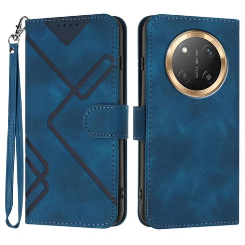 Funda de Cuero con Diseño de Líneas Globales para Honor X9C (Azul Real)