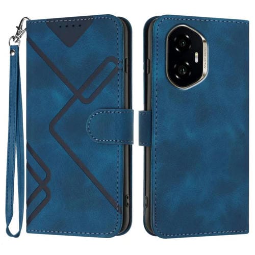 Funda de Cuero para Honor 300 con Diseño de Líneas y Tacto Suave (Azul Real)