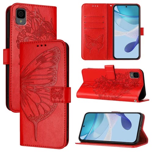 Funda de Cuero para TCL 30Z T602Dl con Diseño de Mariposa En Relieve (Rojo)