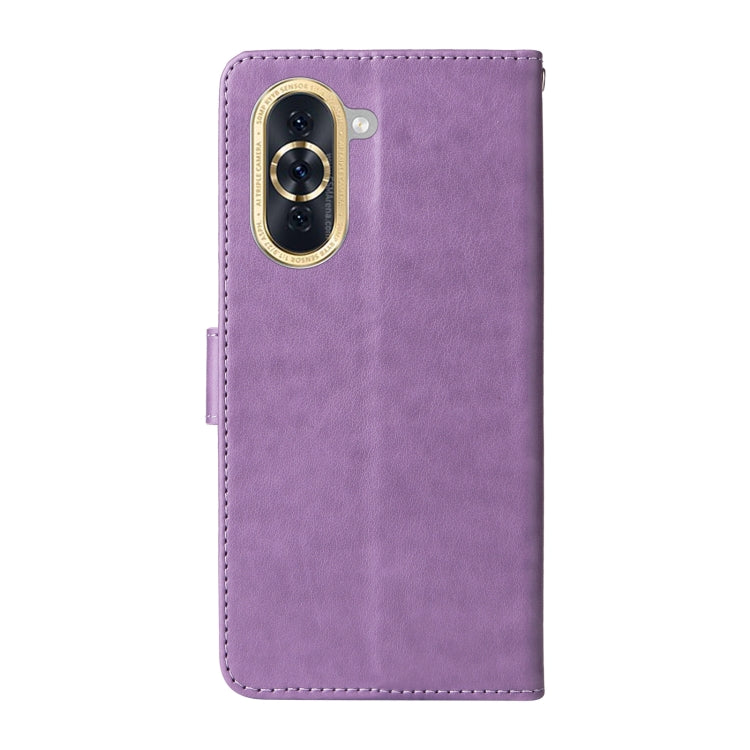 Funda de Cuero para Huawei Nova 10 con Diseño de Mariposas y Flores en Relieve (Morado)