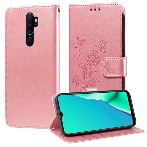 Funda de Cuero con Diseño de Mariposas y Flores En Relieve para Oppo A9 2020/A11X/A5 2020/A11 (Oro Rosa)