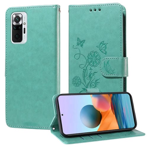Funda de Cuero con Diseño de Mariposas y Flores En Relieve para Redmi Note 10 Pro 4G/Note 10 Pro Max (Verde)
