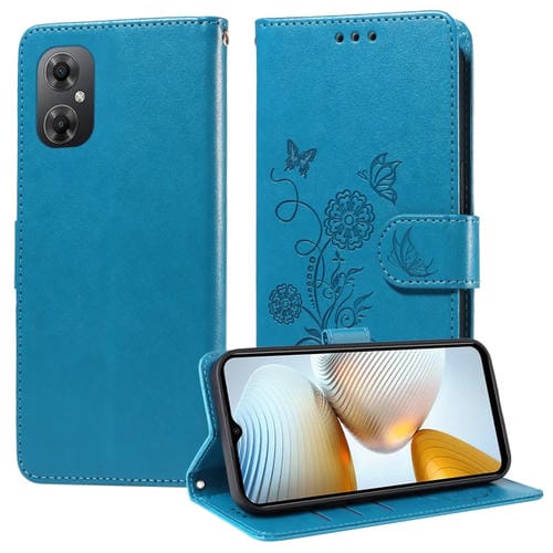 Funda de Cuero con Diseño de Mariposas y Flores En Relieve para Xiaomi Poco M4 5G/M5 4G (Azul)