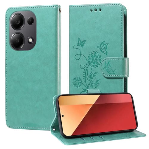 Funda de Cuero con Diseño de Mariposas y Flores En Relieve para Xiaomi Poco M6 Pro 4G (Verde)