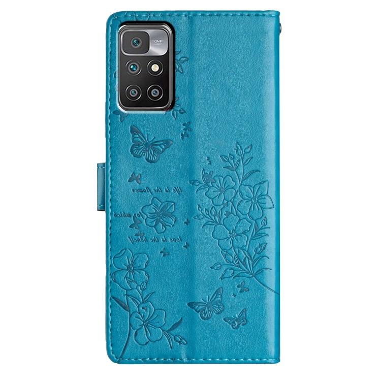 Funda de Cuero con Diseño de Mariposas y Flores para Redmi 10 2022 (Azul)