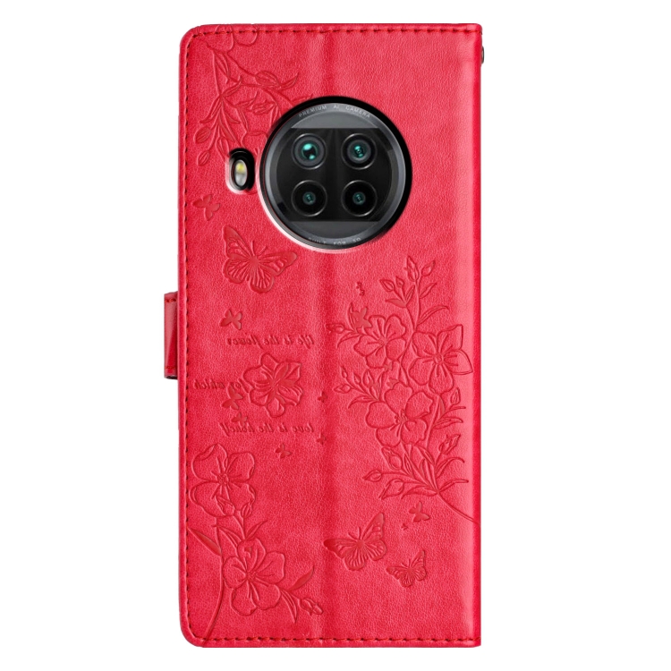 Funda de Cuero con Diseño de Mariposas y Flores para Xiaomi Mi 10T Lite 5G (Rojo)