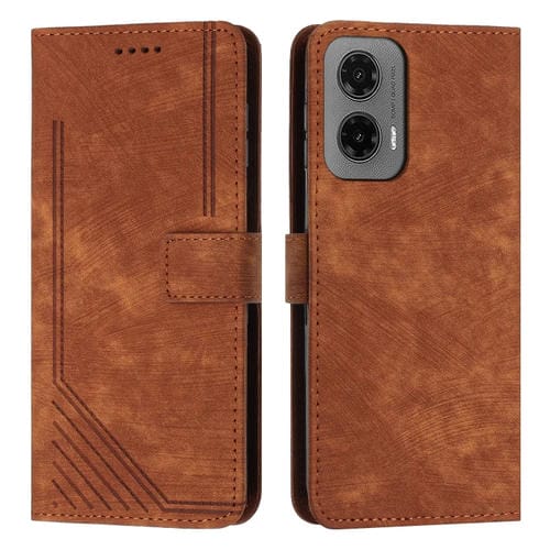 Funda de Cuero Motorola Moto G35 con Diseño de Rayas y Cordón (Marrón)