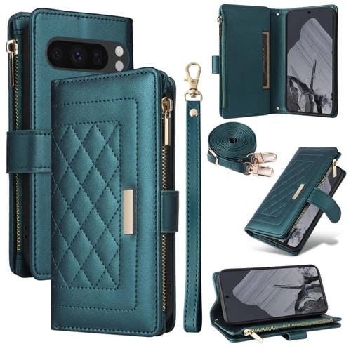 Funda de Cuero con Diseño de Rombos y Billetera Cruzada con Cremallera para Google Pixel 8 Pro (Verde)