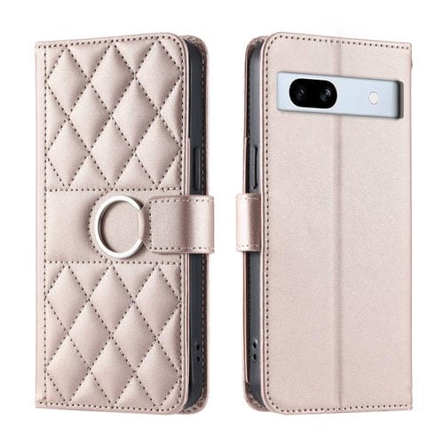 Funda de Cuero Google Pixel 7A con Diseño Rombal y Hebilla de Anillo (Oro Rosa)