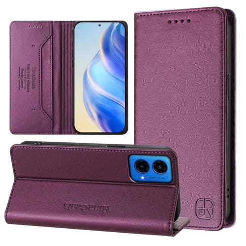 Funda de Cuero Motorola Moto G45 5G G34 5G Rc01 Doble Pliegue Succión Magnética (Violeta)