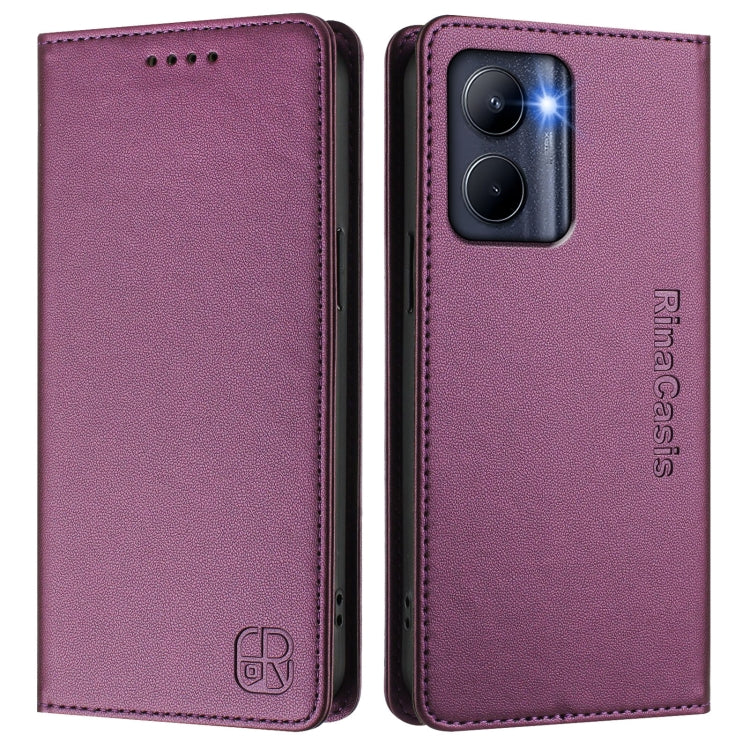 Funda de Cuero con Doble Pliegue y Succión Magnética para Realme C33 2022/2023 Global Rc01 (Violeta)
