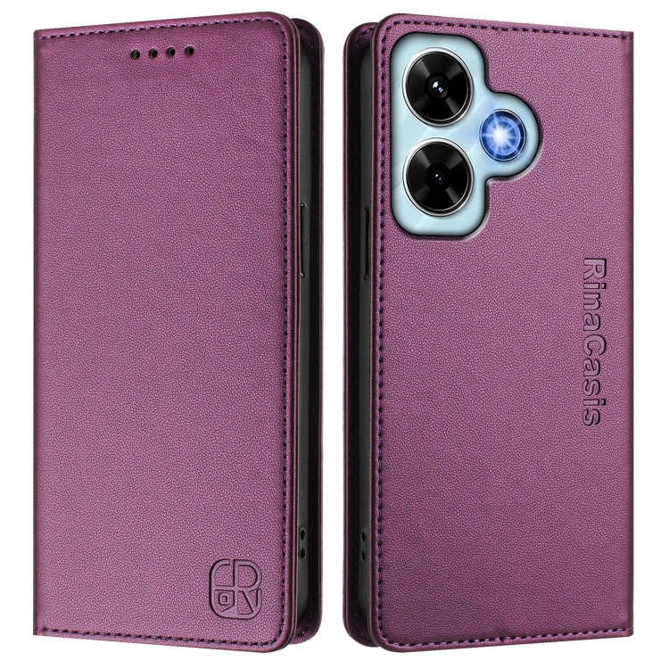 Funda de Cuero con Doble Pliegue y Succión Magnética para Redmi Note 13 4G Global Rc01 (Violeta)