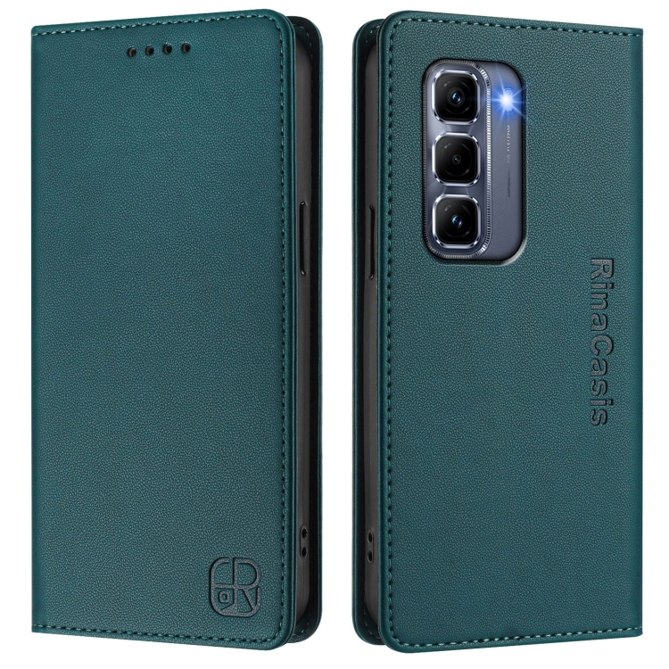 Funda de Cuero Infinix Hot 50 Pro+ 4G Rc01 con Doble Pliegue y Succión Magnética (Verde Oscuro)